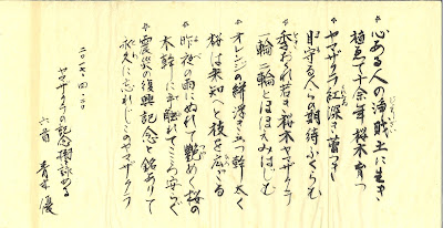 | 水茎の跡も麗しい青木様の歌・・・ |