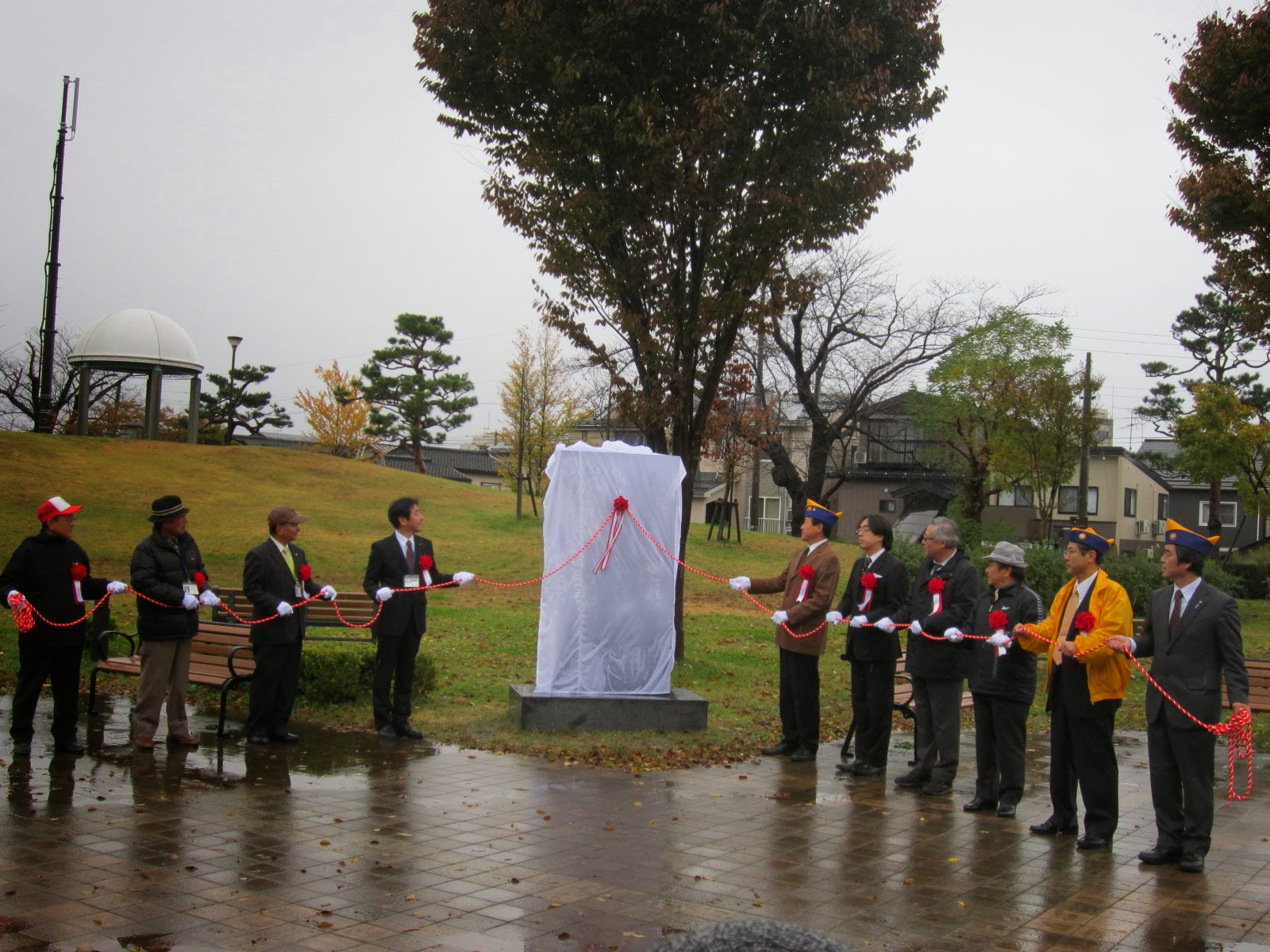 2013年11月13日 / 最終更新日時 : 2019年10月4日 William 記念碑 長岡柏ライオンズクラブ様 東山油田中島地域製油所記念碑除幕式 とっとスタッフ山﨑です。 昨日11月12日 水道公園にて柏ライオンズクラブ様主催の東山油田中島地域製油所記念碑除幕式が行われました。我々とっとスタッフも除幕式のお手伝いをさせていただきました。 あいにくのお天気でしたが、柏ライオンズ会長 田中政人様のご挨拶、産業史研究会会長 松本和明様のスピーチと粛々と式が進められました。 弊社桜井が相談役を務める水道タンクの会の会長 小林善雄様、羽賀勝一様、諸橋稔様もご出席され、またひとつ長岡のランドマークが増えました。 Follow me! FacebookXBlueskyHatenaCopy