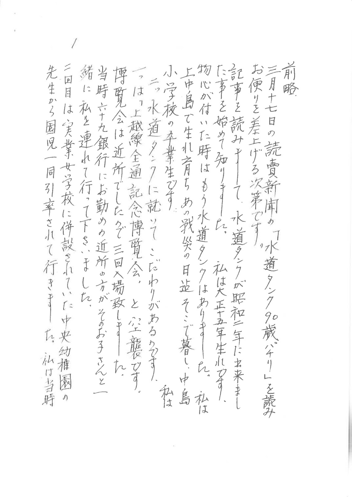 桜井は「長岡水道タンク友の会」会長の小林善雄様より一通の手紙を見せて頂いておりました。