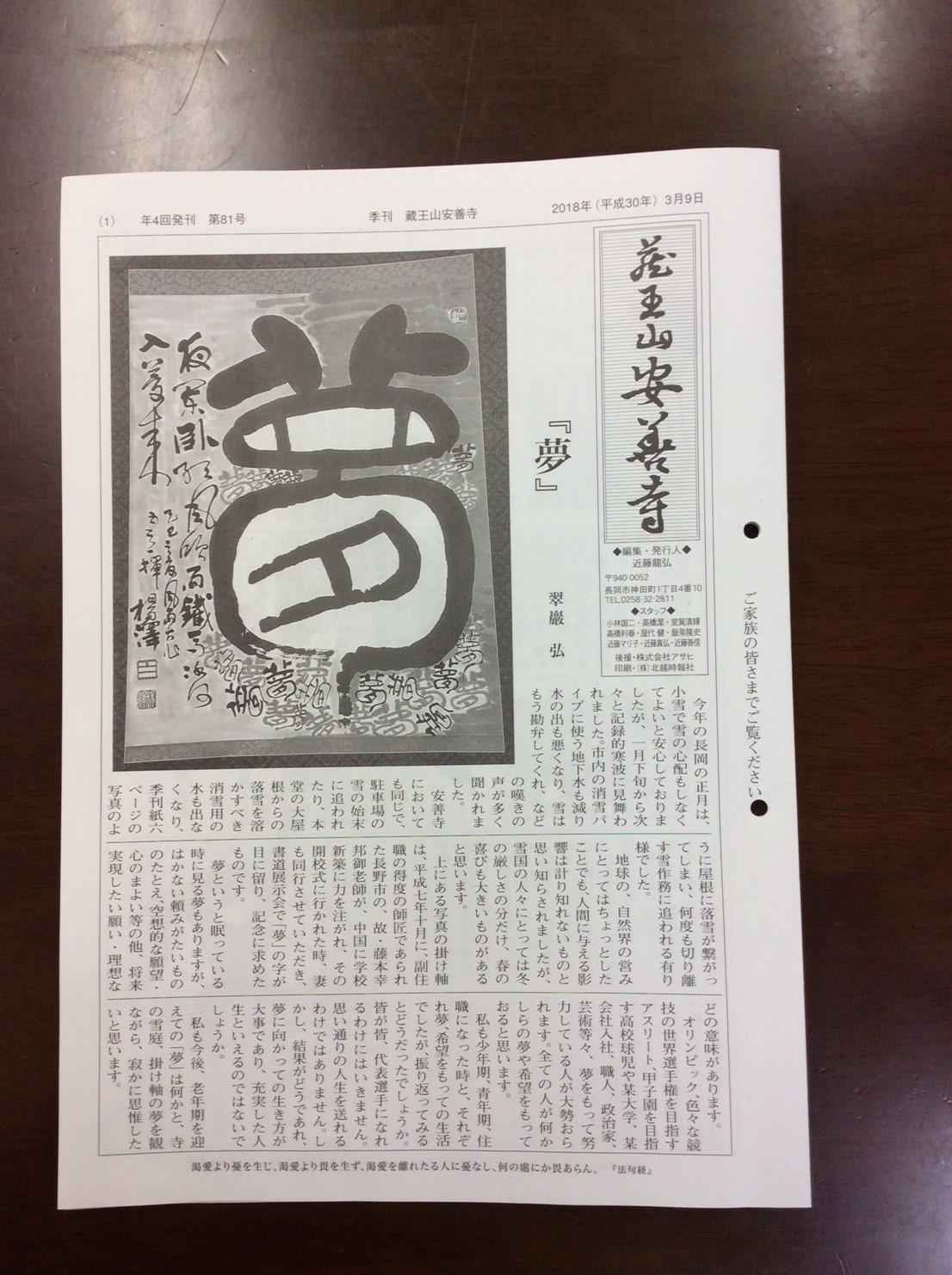 安善寺様では年4回、季刊誌を発刊されております。