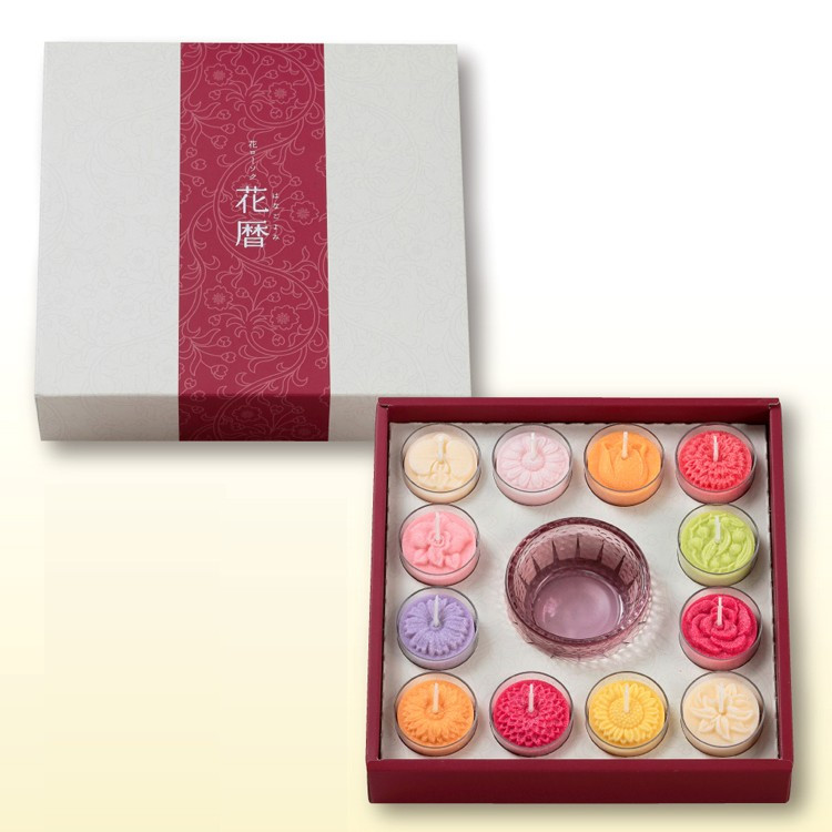 四季折々の洋花をレリーフにしたローソク。クリアカップ入りなので、片付けも簡単。