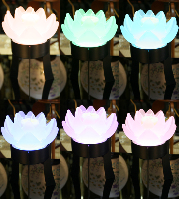 LEDコースターの色の変化にあわせて、ロータスグレイスがさまざまな表情で幻想的に浮かび上がります。