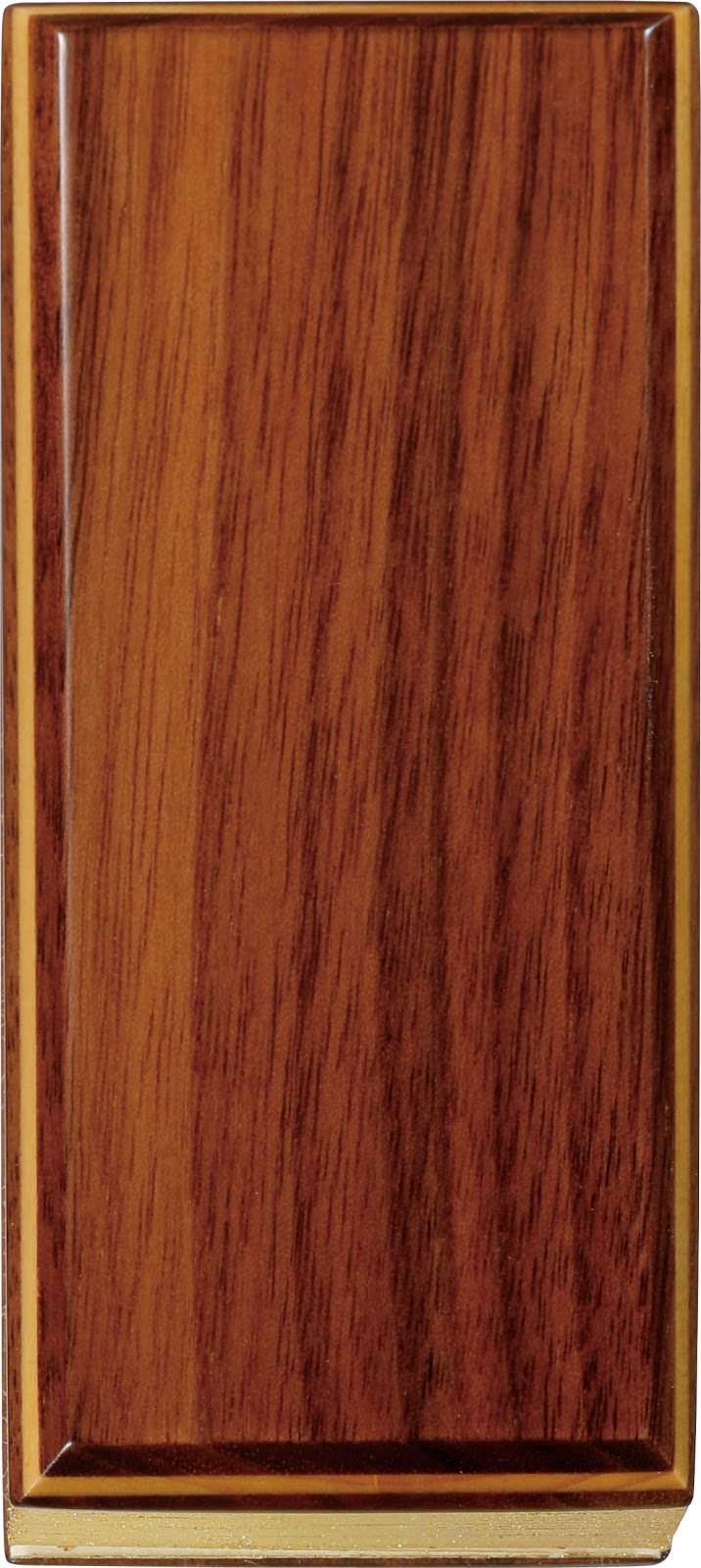 寄木の技術を活かした札板。ウォールナット×ヒバの材種を使用し、家具調仏壇のデザインにマッチします。