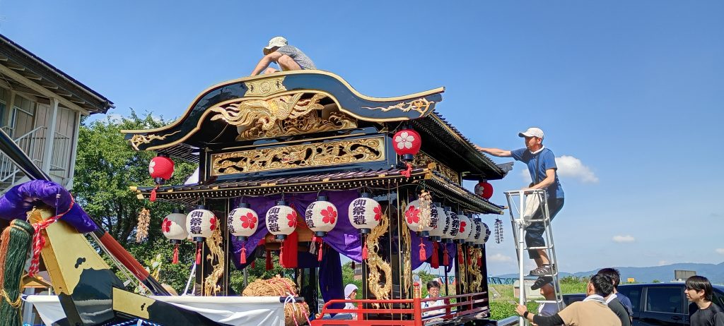 8月のお祭りでは新調されたピカピカの提灯が山車に取り付けられお祭りを盛り上げました。