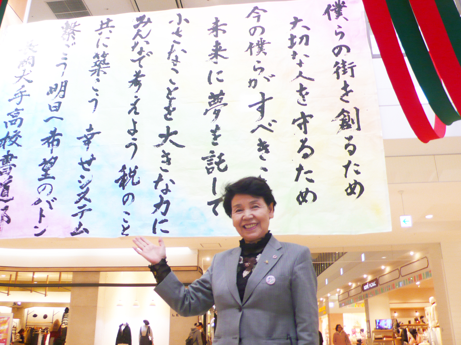 先日11月19日長岡千秋のアピタにて長岡大手高校書道部が書道パフォーマンスを披露しました。